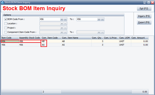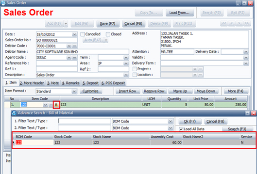 - Reference No/ Debtor Code/ BOM Code/ Quantity/ UOM/