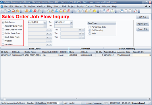- Sales Order Job Flow Inquiry