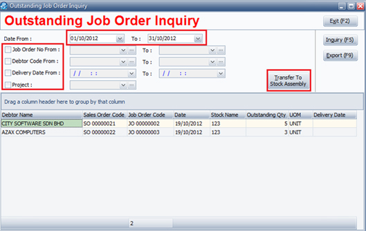- Outstanding Job Order Inquiry - Allow direct Transfer to Stock Assembly