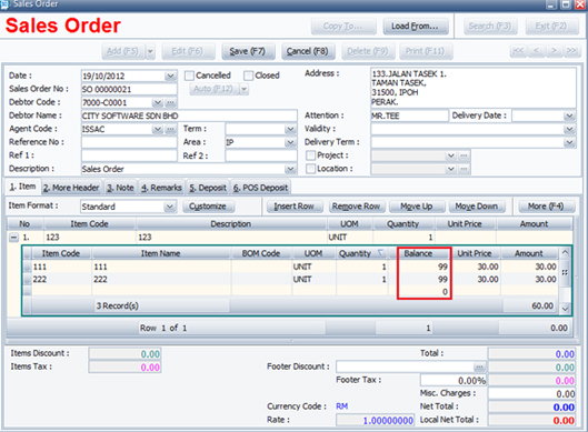 click the"B"button to select item code, after select you can view the stock balance at bottom.